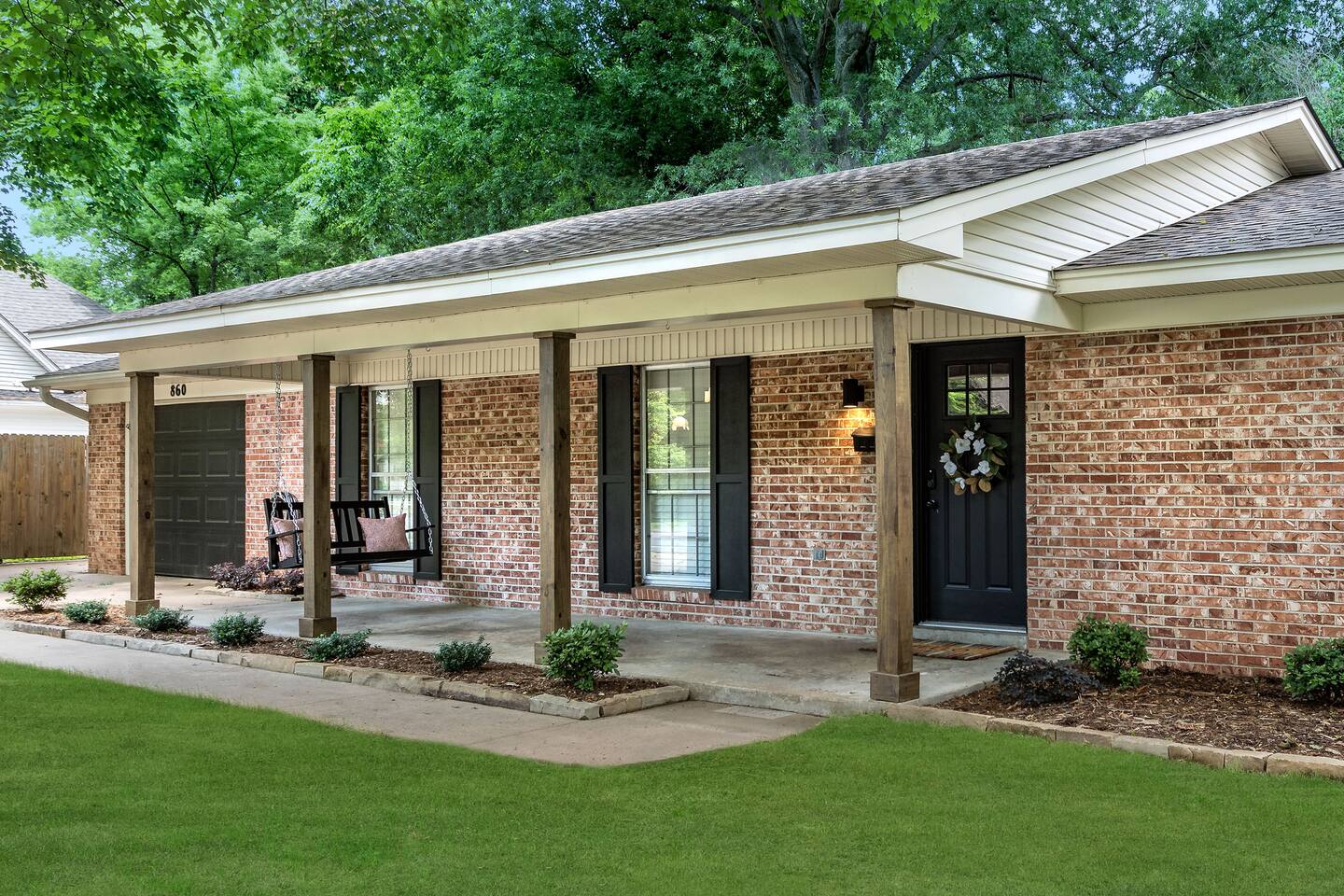 We have added porch chairs in place of the porch swing in original photos.